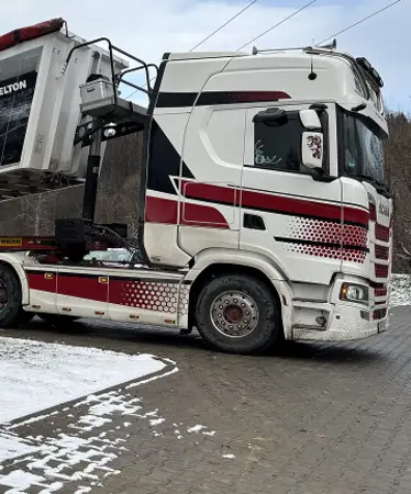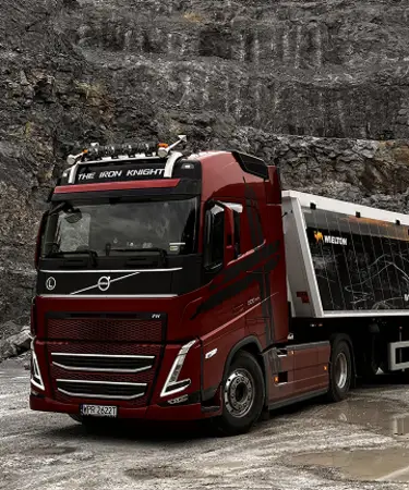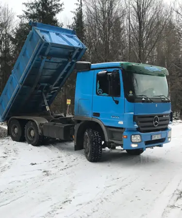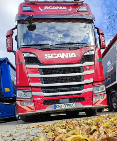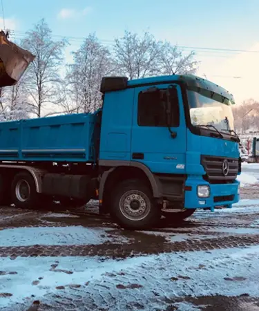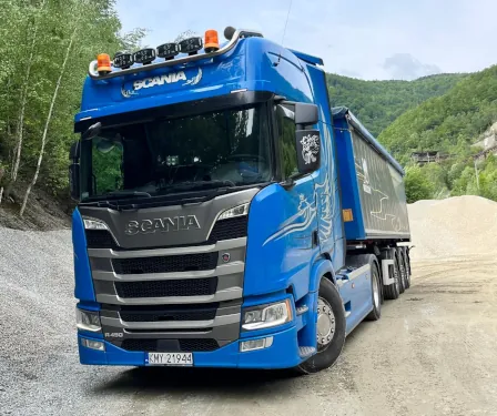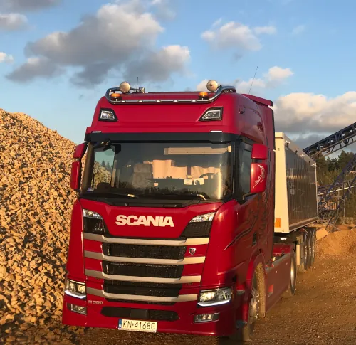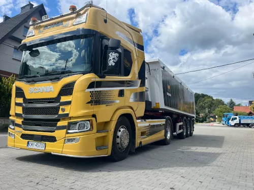 Posiadamy osiem ciągników siodłowych z naczepami samowyładowczymi o kubaturze od 32 m³ do 38 m³